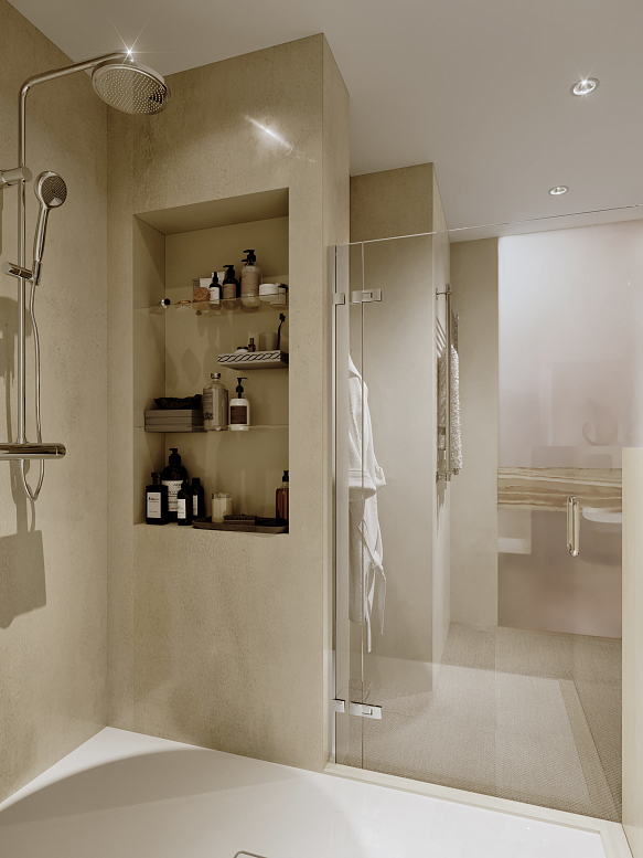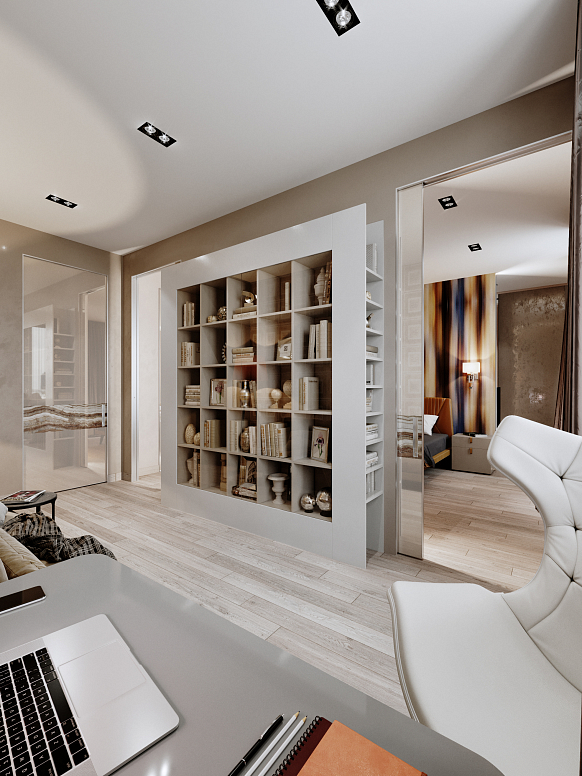 Квартира в новом монолитном доме. Заказчики - семейная пара - стремились уйти от однообразия стандартных планировок. Они хотели получить просторное жилье, выдержанное в стиле строгого минимализма. Чтобы создать индивидуальный интерьер в типовом доме пришлось реализовать ряд нетривиальных решений. Например, кухню зонировали прозрачными перегородками. Общественная зона прихожая-гостиная-кухня получилась просторной и комфортной.