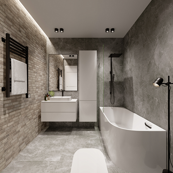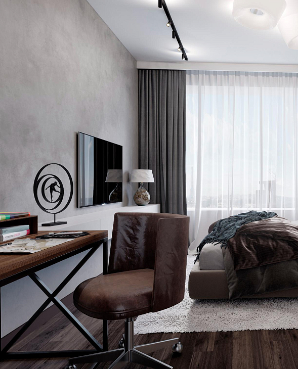 Открытая планировка пространства создает ощущение простора и свободы, идеально подходя для отдыха. Большие окна обеспечивают обилие естественного света и открывают живописные виды на город и зелёные зоны комплекса.